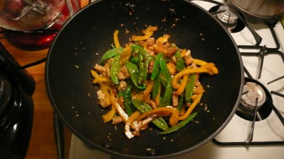 For dinner tonight Julie and I made some stir fried Tempeh with Lemongrass, Peppers, and Snow Peas