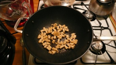 So first, we sautéed the tempeh in the olive oil until it got brown.