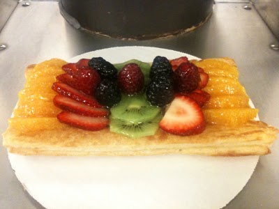 i made a fruit tart pastry school.  this is my favorite thing ever ever ever, and now i know how to make one!  not that its too complicated!  once i knew how to make pastry cream i suppose it would be pretty easy to figure out.  after all all it is is cut up fruit!
