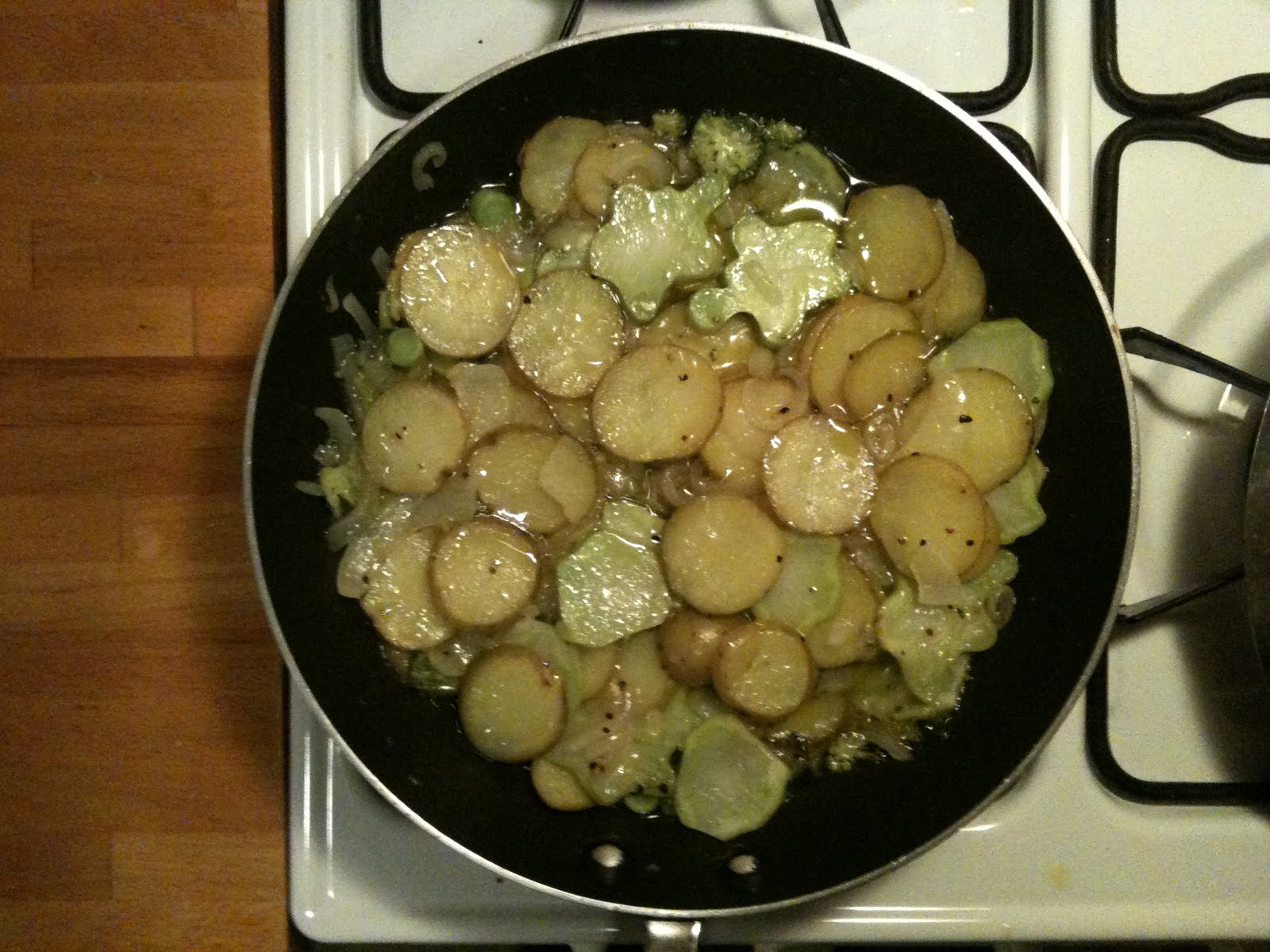 Cook for about 10 seconds, and then add in the onions, garlic, and carrots. stir and cook until the onions are a little wilted, and then add the potatoes. fry the potatoes until they start going brown. don’t worry if they are sticking, let them stick. This will add to the flavor!