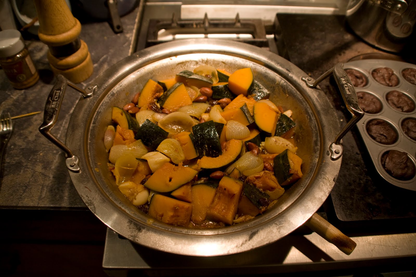 Anyways, i made a buttercup squash Tajine (but you can use any kind of winter squash.  i LOVE winter squash!)  for the most part this dish is really easy to make.  If you don’t have a Tajine, you can make the same thing in a casserole dish, but it will come out differently because of the lack of the magic cone shaped top.