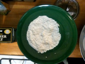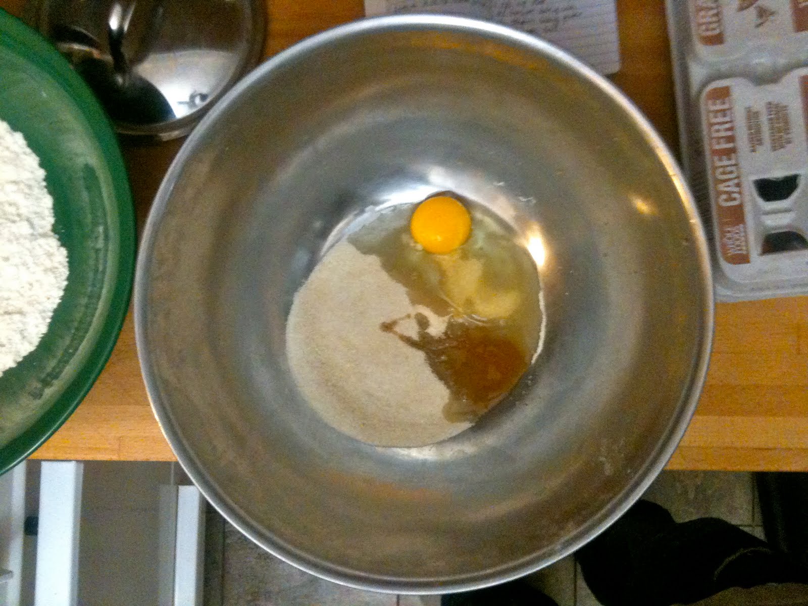 1. In a bowl, mix the eggs, flour, baking powder, sugar, salt, and milk together. Whisk until its bubbly, cover and let it sit for about 15-20 minutes