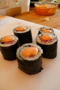 and here are my spicy tuna rolls!  the spicy mayonnaise (is that really how you spell that?  spell check says it is so….) was provided by Mike, who provided the Tuna!