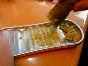 here i am making some fresh Wasabi.  this stuff is way better than the wasabi you normally get in the restaurant!
